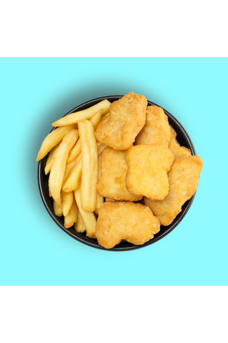 5stk med pommes frites og saus allergener: hvete, egg og sesam (5 pieces with french fries and sauce)